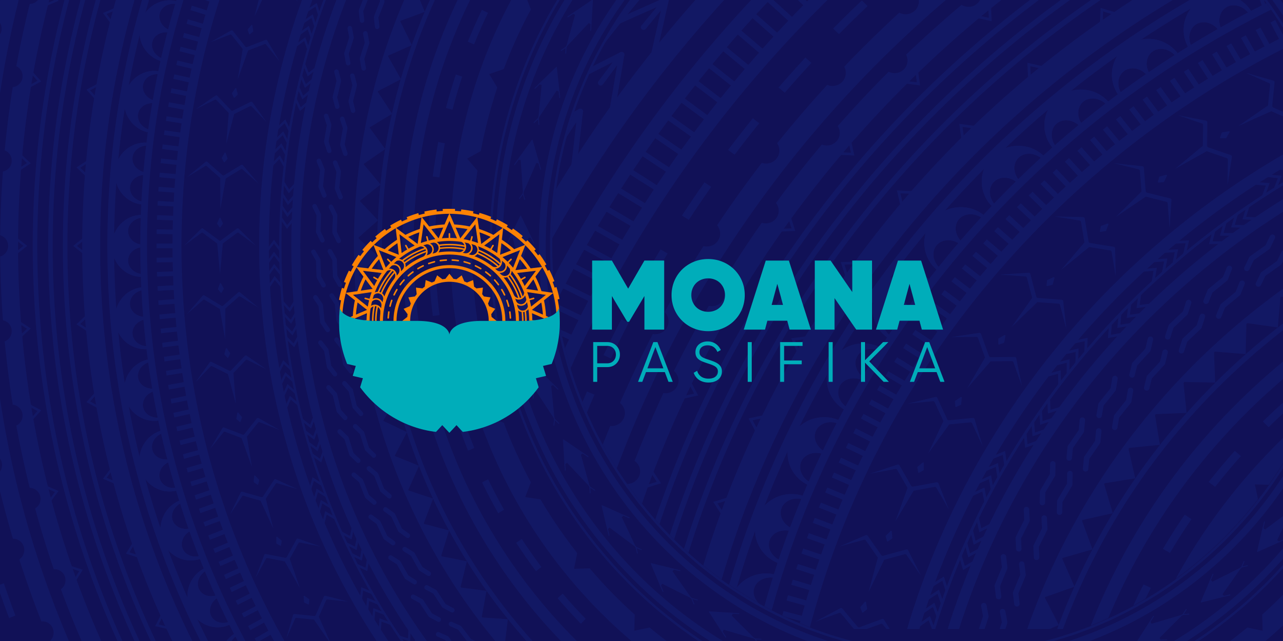Logo/Mark: Sun, land, and sea woven together, the sun filled with tatau motifs radiating energy, the land symbolising Pasifika islands, the moana represented with whale-tail currents and abundance.