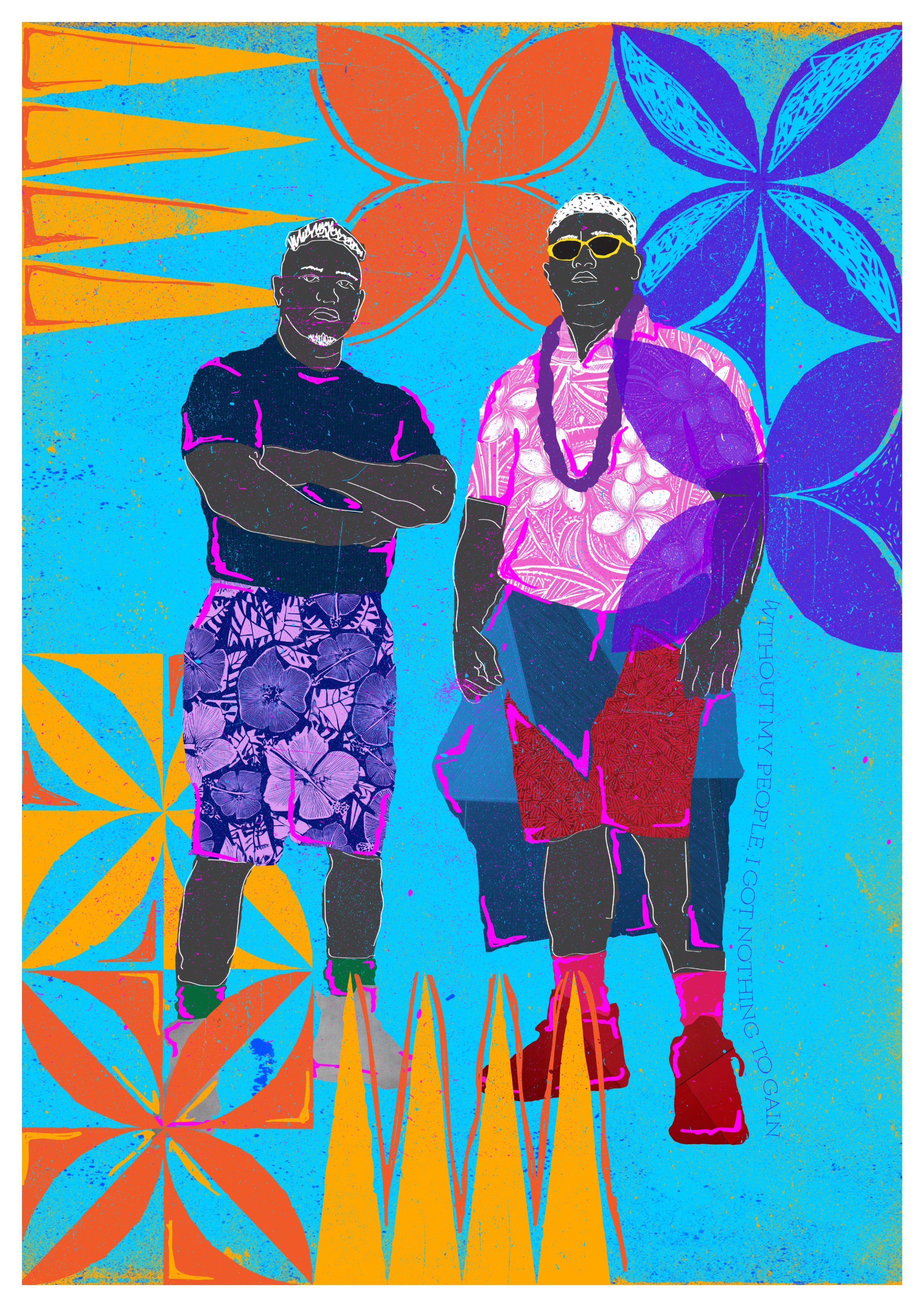Wove together motifs and elements from across Pasifika, tatau, tapa, ngatu, hiapo to symbolise unity.
