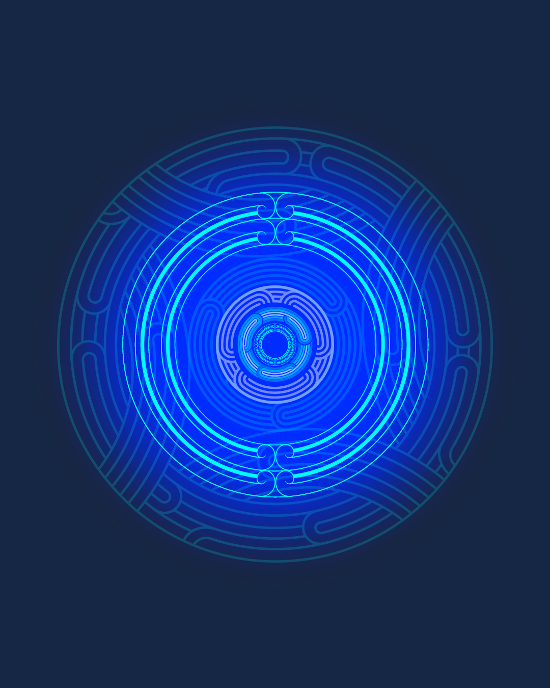 Core Artwork: Central circular motif representing Ruaitewānanga, a vessel of learning expanding outward, symbolising shared knowledge and collaboration.